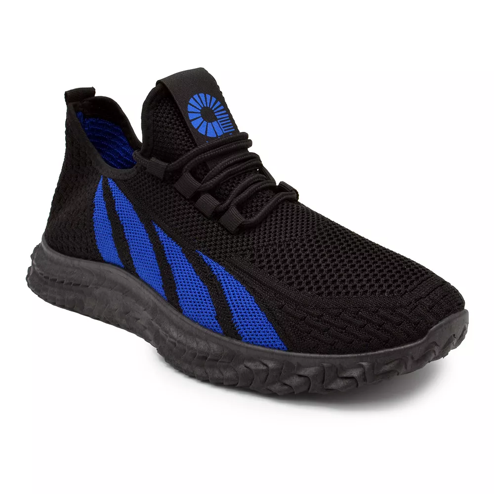 Step into a comfortable yet stylish look with these Akademiks Wave men’s stripe knit sneakers.