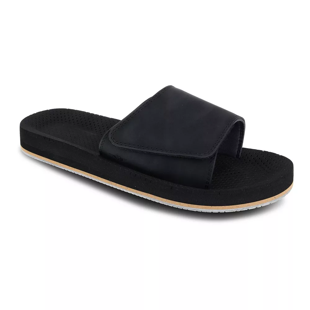 Slide into comfortable style with these Dockers men’s performance slide sandals.