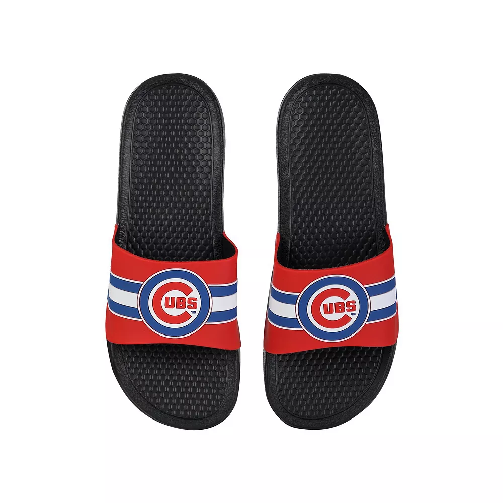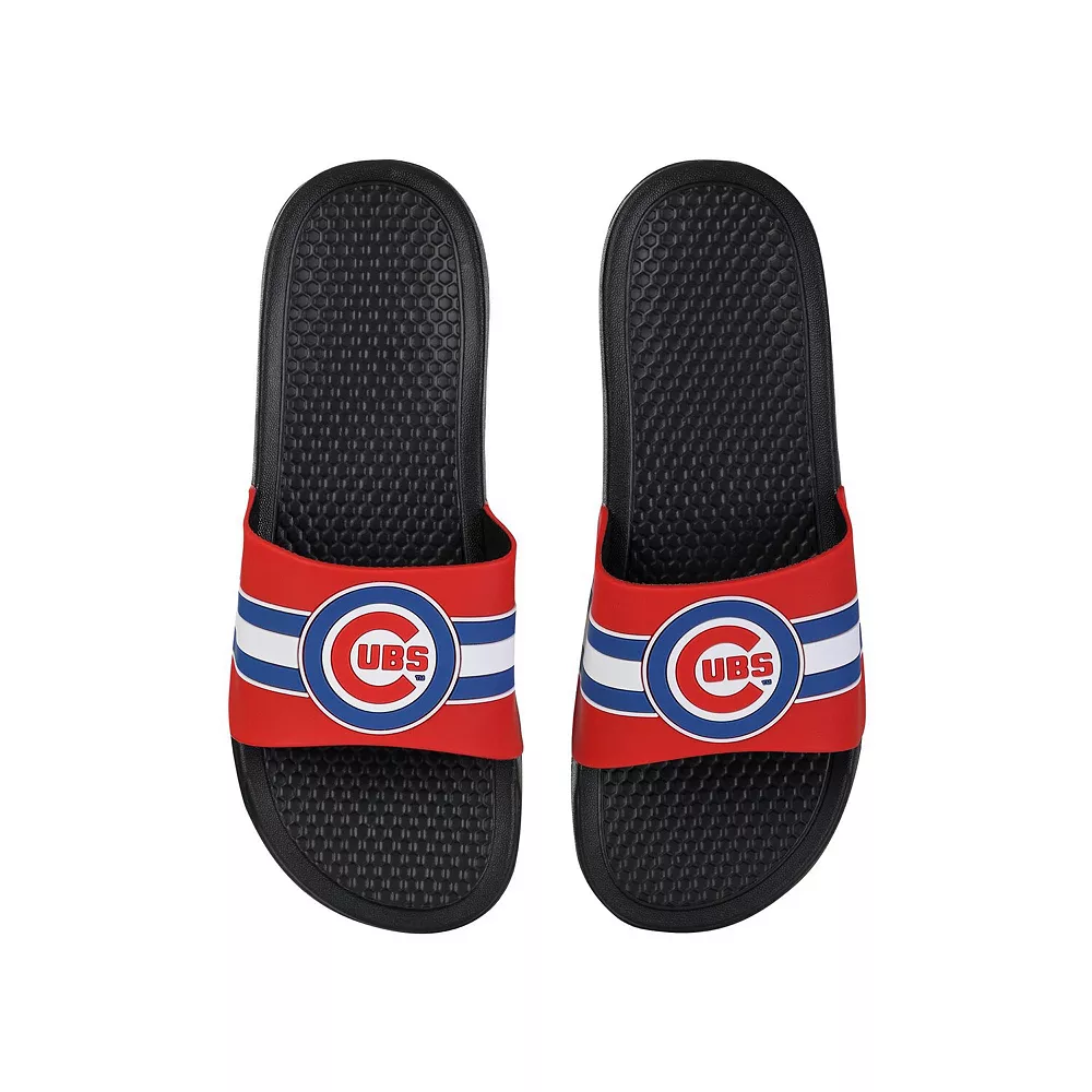 Keep your feet cool in hot weather by wearing these Chicago Cubs Stripe Raised slide sandals from FOCO. They feature vivid Chicago Cubs graphics, and the slip-on style makes them easy to use. The textured soles also help prevent you from slipping.