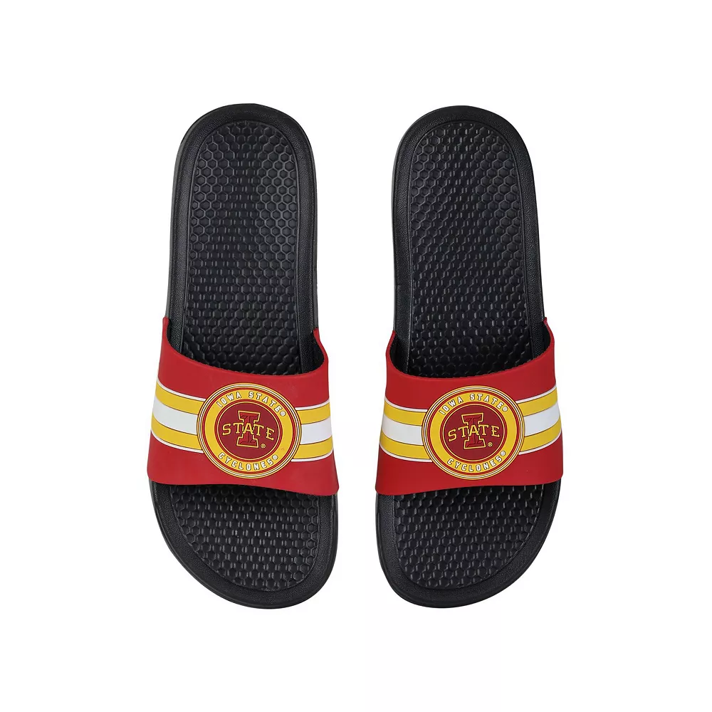 Keep your feet cool in hot weather by wearing these Iowa State Cyclones Stripe Raised slide sandals from FOCO. They feature vivid Iowa State Cyclones graphics, and the slip-on style makes them easy to use. The textured soles also help prevent you from slipping.
