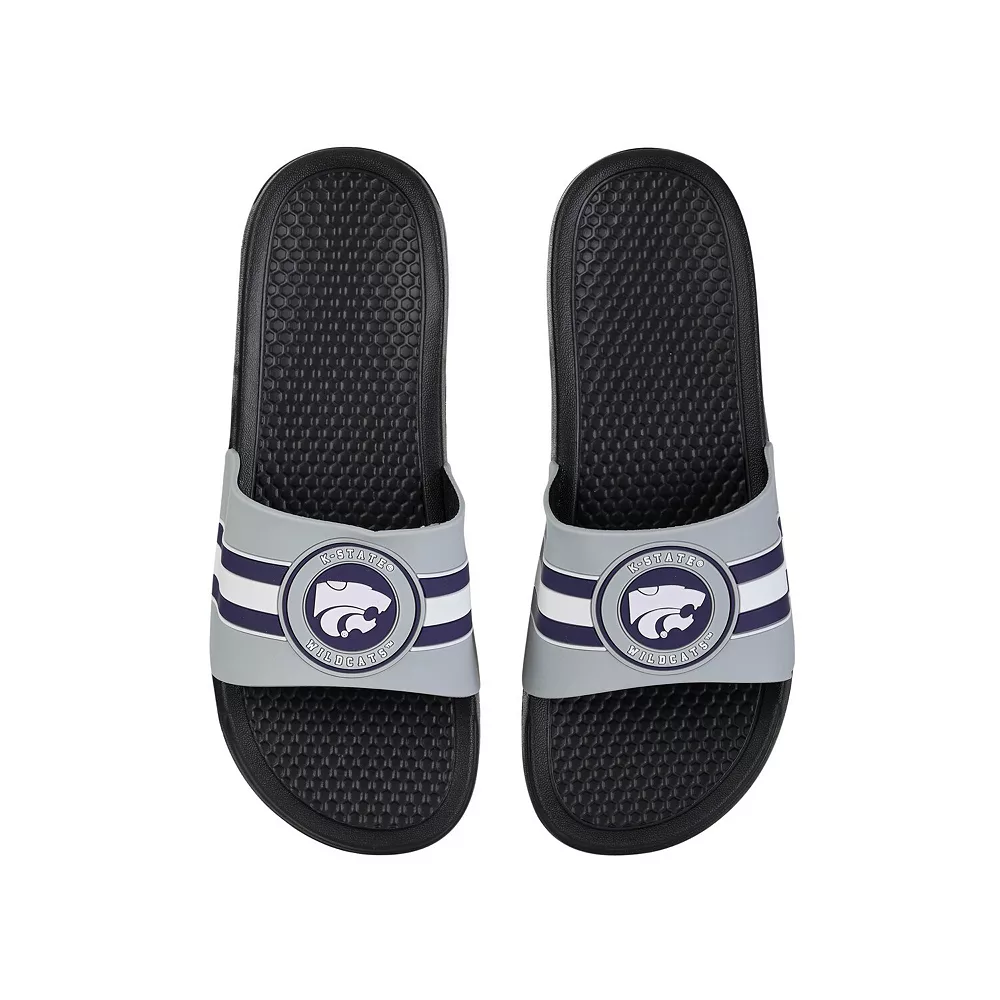 Keep your feet cool in hot weather by wearing these Kansas State Wildcats Stripe Raised slide sandals from FOCO. They feature vivid Kansas State Wildcats graphics, and the slip-on style makes them easy to use. The textured soles also help prevent you from slipping.