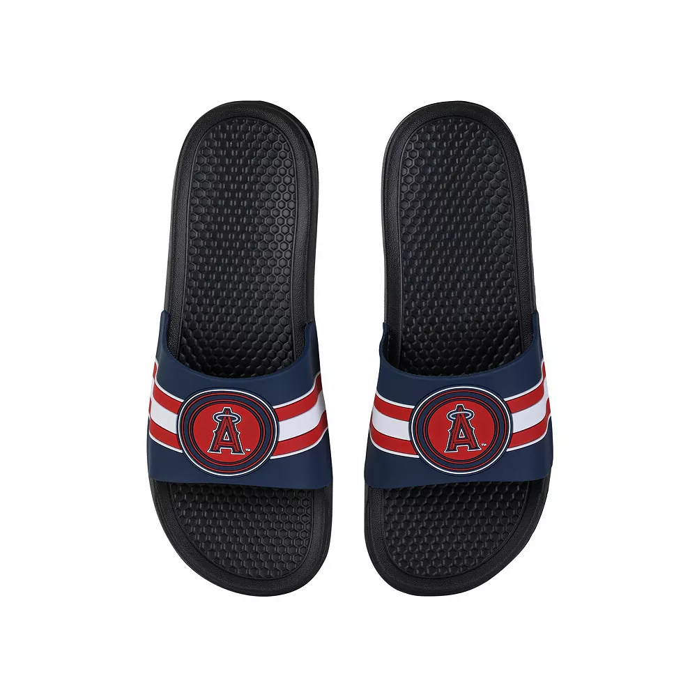 Keep your feet cool in hot weather by wearing these Los Angeles Angels Stripe Raised slide sandals from FOCO. They feature vivid Los Angeles Angels graphics, and the slip-on style makes them easy to use. The textured soles also help prevent you from slipping.