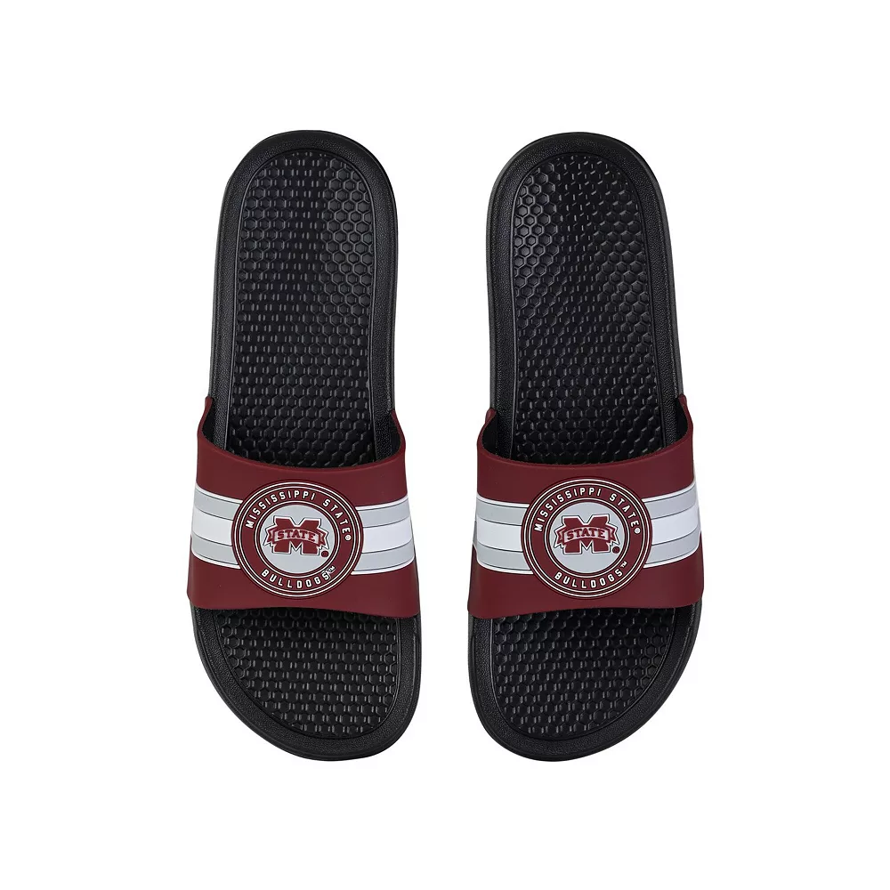 Keep your feet cool in hot weather by wearing these Mississippi State Bulldogs Stripe Raised slide sandals from FOCO. They feature vivid Mississippi State Bulldogs graphics, and the slip-on style makes them easy to use. The textured soles also help prevent you from slipping.