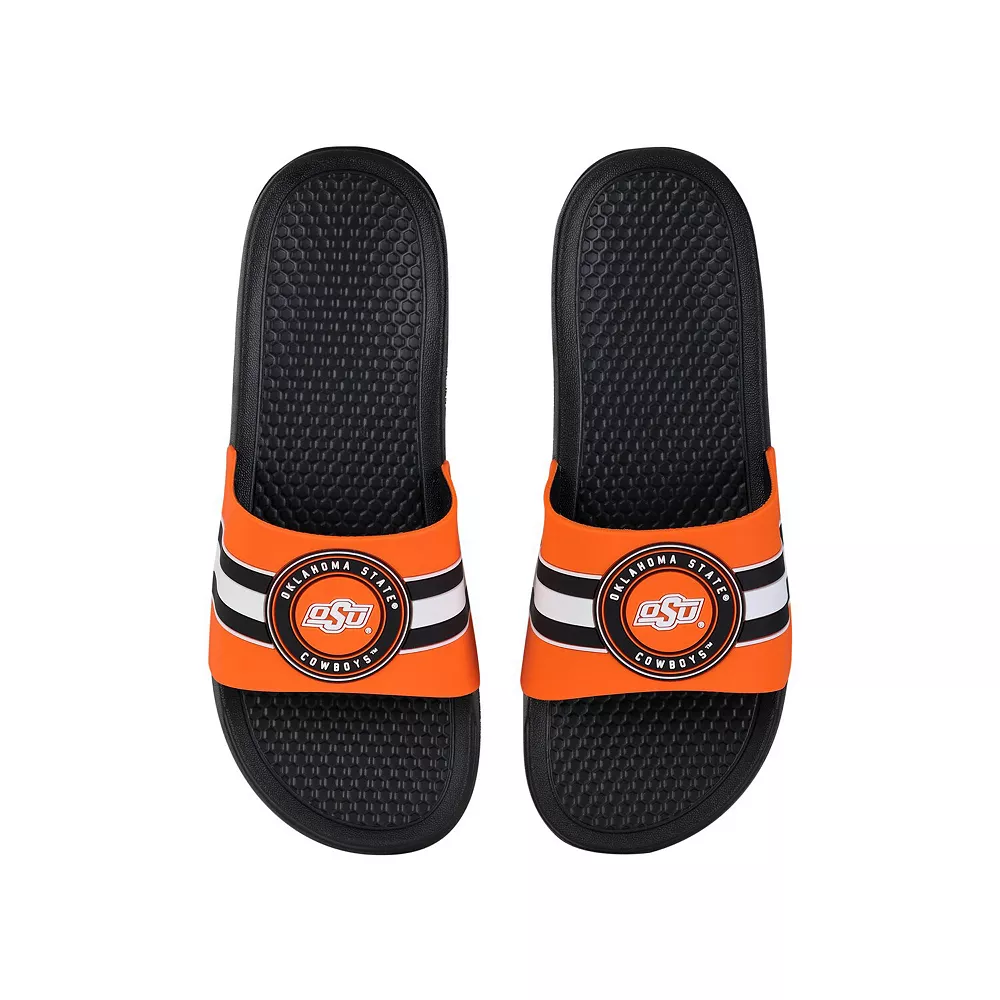 Keep your feet cool in hot weather by wearing these Oklahoma State Cowboys Stripe Raised slide sandals from FOCO. They feature vivid Oklahoma State Cowboys graphics, and the slip-on style makes them easy to use. The textured soles also help prevent you from slipping.