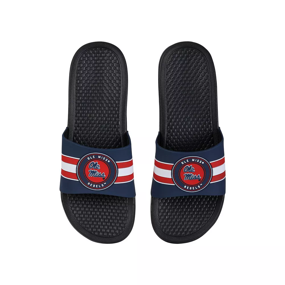 Keep your feet cool in hot weather by wearing these Ole Miss Rebels Stripe Raised slide sandals from FOCO. They feature vivid Ole Miss Rebels graphics, and the slip-on style makes them easy to use. The textured soles also help prevent you from slipping.