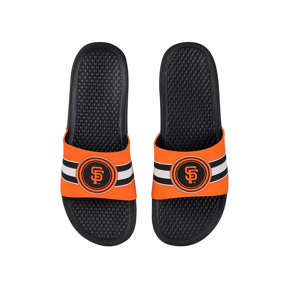 Keep your feet cool in hot weather by wearing these San Francisco Giants Stripe Raised slide sandals from FOCO. They feature vivid San Francisco Giants graphics, and the slip-on style makes them easy to use. The textured soles also help prevent you from slipping.