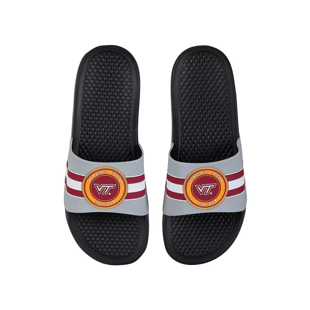 Keep your feet cool in hot weather by wearing these Virginia Tech Hokies Stripe Raised slide sandals from FOCO. They feature vivid Virginia Tech Hokies graphics, and the slip-on style makes them easy to use. The textured soles also help prevent you from slipping.