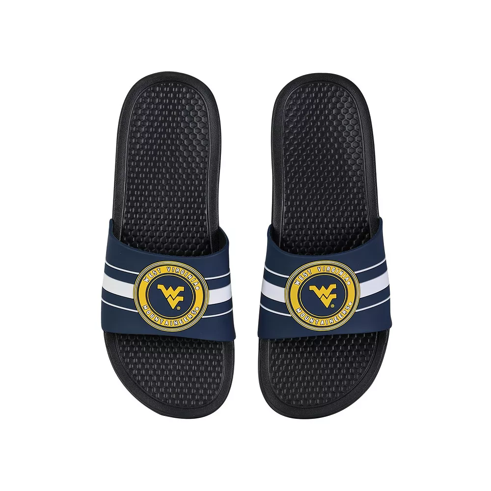 Keep your feet cool in hot weather by wearing these West Virginia Mountaineers Stripe Raised slide sandals from FOCO. They feature vivid West Virginia Mountaineers graphics, and the slip-on style makes them easy to use. The textured soles also help prevent you from slipping.