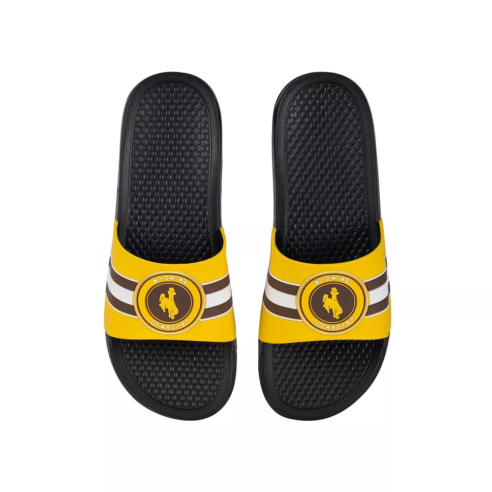 Keep your feet cool in hot weather by wearing these Wyoming Cowboys Stripe Raised slide sandals from FOCO. They feature vivid Wyoming Cowboys graphics, and the slip-on style makes them easy to use. The textured soles also help prevent you from slipping.