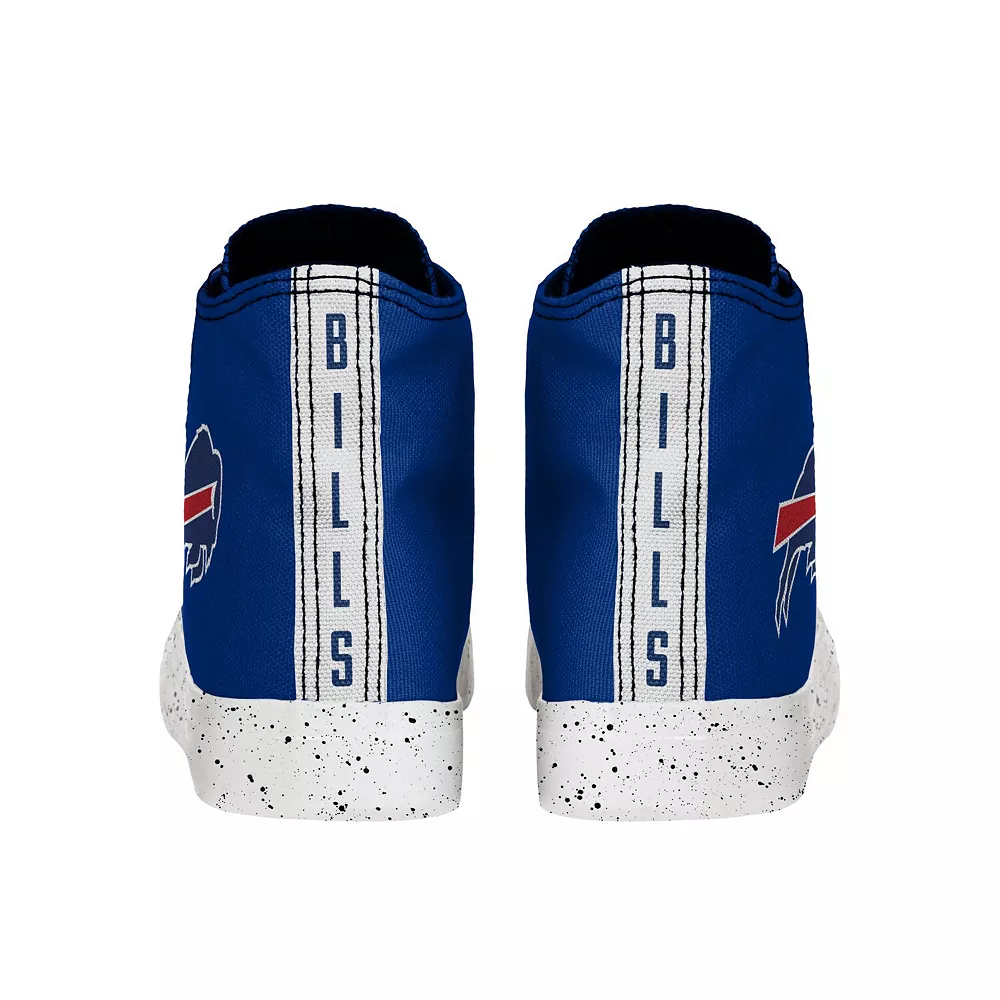 Keep your Buffalo Bills kicks in style with these High Top sneakers from FOCO. They feature a paint splatter design and the recognizable Buffalo Bills logo. A textured outsole also helps prevent slipping or sliding.