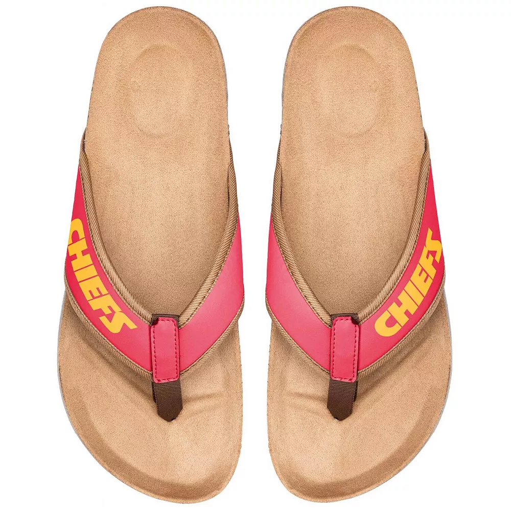 Whether you’re headed to the beach or just lounging around the house, show your Kansas City Chiefs spirit with ease in these Cork flip flops from FOCO. Featuring printed Kansas City Chiefs graphics, these flip flops offer a great way to add an extra bit fandom to your outfit. Best of all, the unique design ensures a comfortable fit all day long, while the textured bottoms will help prevent slips and falls.
