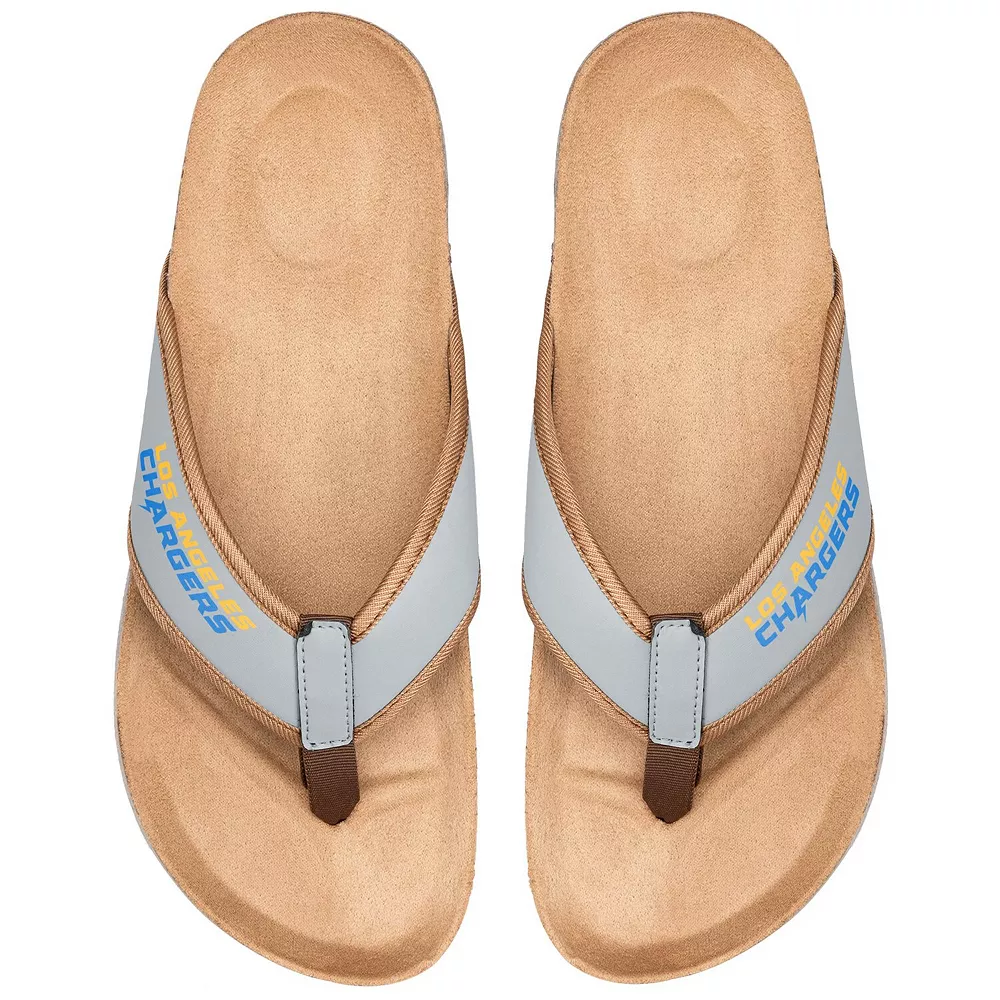 Whether you’re headed to the beach or just lounging around the house, show your Los Angeles Chargers spirit with ease in these Cork flip flops from FOCO. Featuring printed Los Angeles Chargers graphics, these flip flops offer a great way to add an extra bit fandom to your outfit. Best of all, the unique design ensures a comfortable fit all day long, while the textured bottoms will help prevent slips and falls.