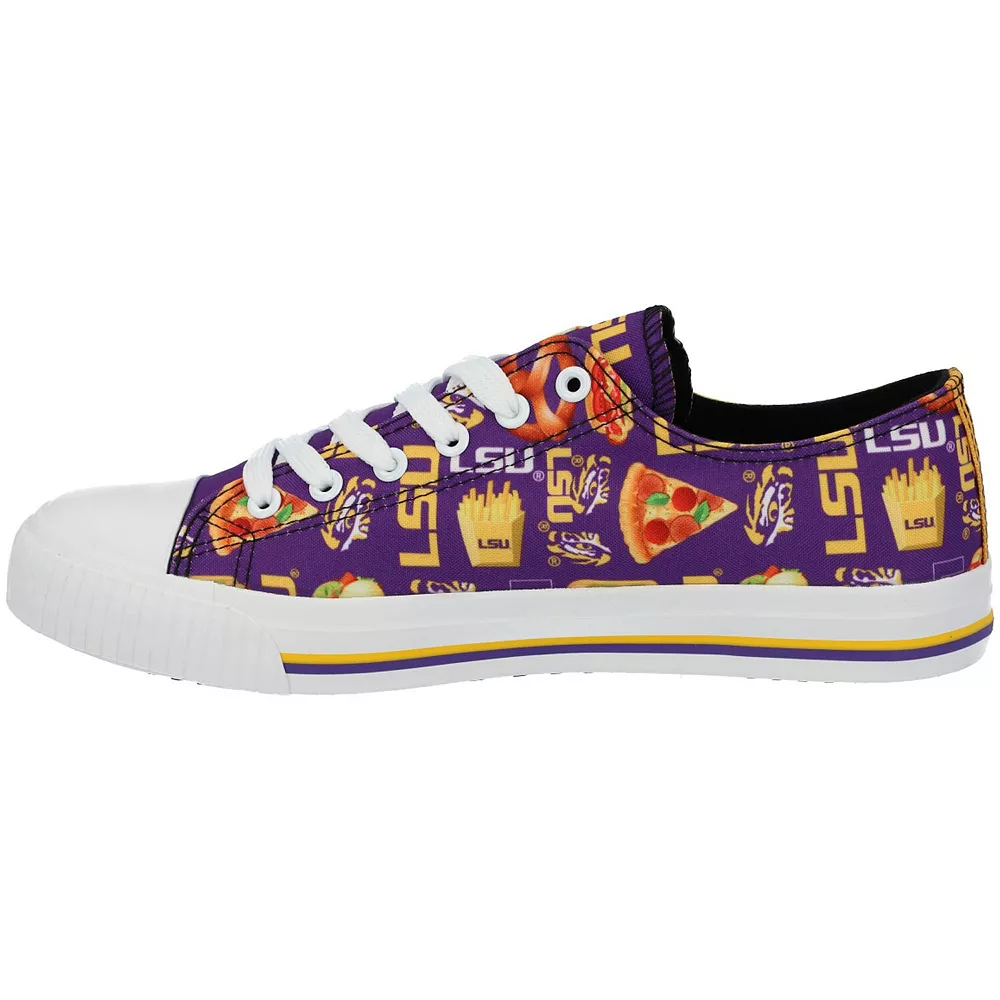 If you’re a devoted LSU Tigers fan, express your appreciation with these Food Print low top canvas sneakers by FOCO. Designed in comfortable and durable canvas fabric, these lace-up sneakers are decorated with team graphics in a fun pattern. Rest assured, you’ll love every step you take in these LSU Tigers shoes.
