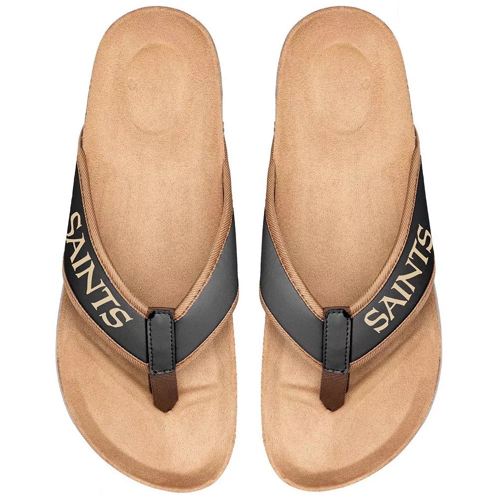 Whether you’re headed to the beach or just lounging around the house, show your New Orleans Saints spirit with ease in these Cork flip flops from FOCO. Featuring printed New Orleans Saints graphics, these flip flops offer a great way to add an extra bit fandom to your outfit. Best of all, the unique design ensures a comfortable fit all day long, while the textured bottoms will help prevent slips and falls.
