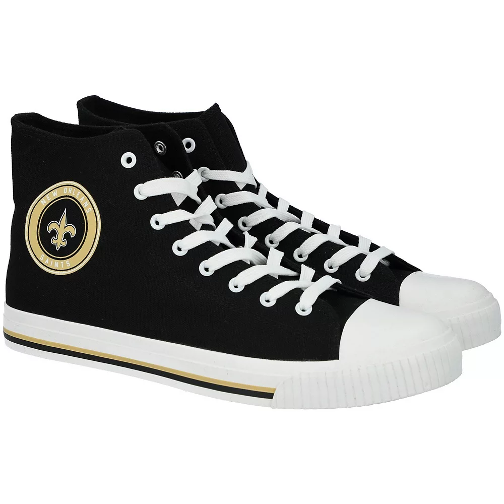 Add some extra New Orleans Saints flavor to your team-inspired outfit with these High Top Canvas sneakers from FOCO. They feature New Orleans Saints graphics accentuated by authentic team colors, and their lace-up style offers a vintage look. A textured outsole will also make it easier to maintain traction in these shoes, giving you a comfortable stride whenever you sport them.