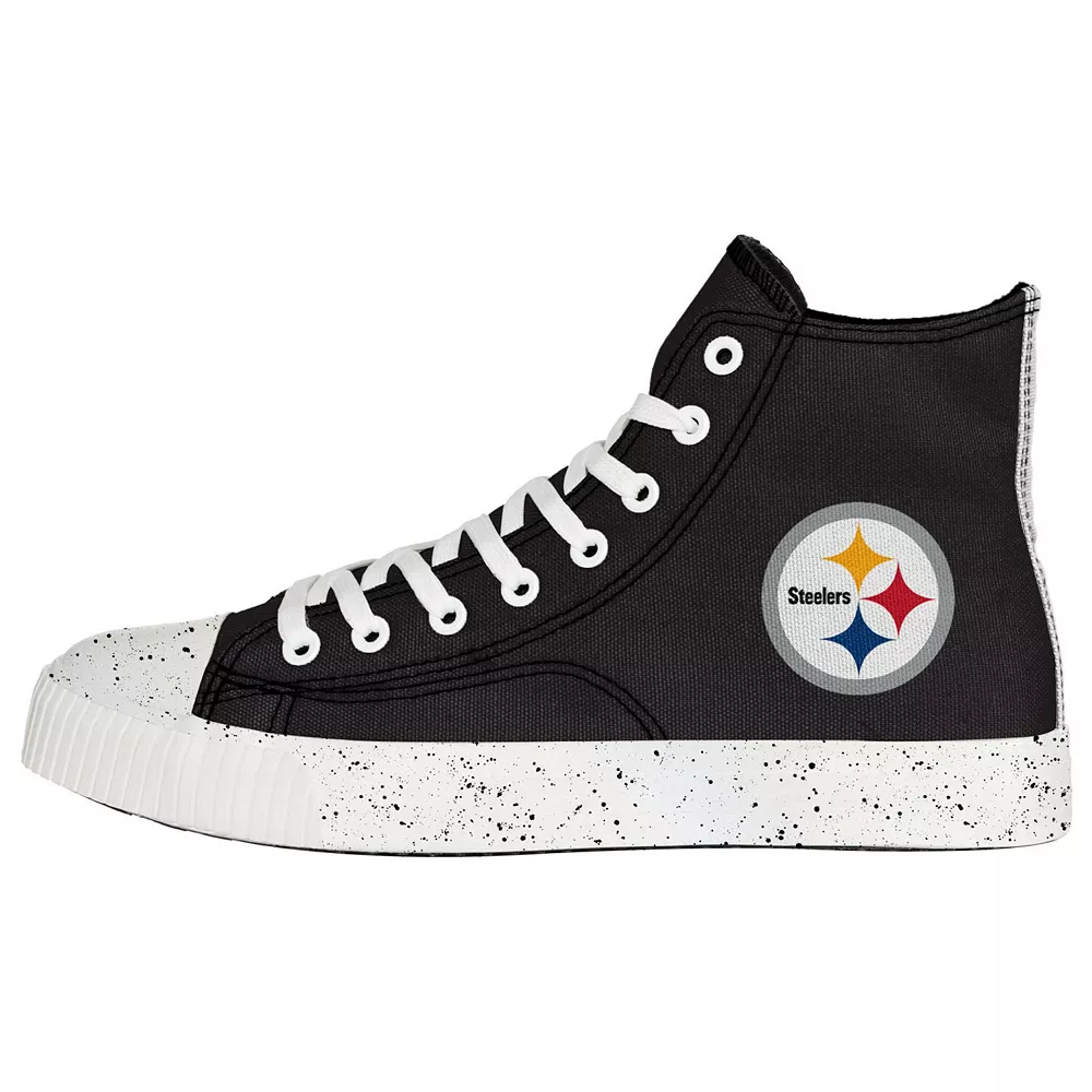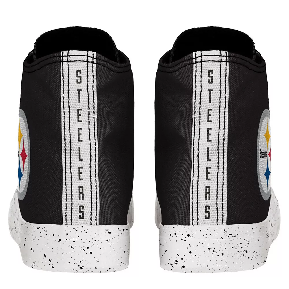 Keep your Pittsburgh Steelers kicks in style with these High Top sneakers from FOCO. They feature a paint splatter design and the recognizable Pittsburgh Steelers logo. A textured outsole also helps prevent slipping or sliding.