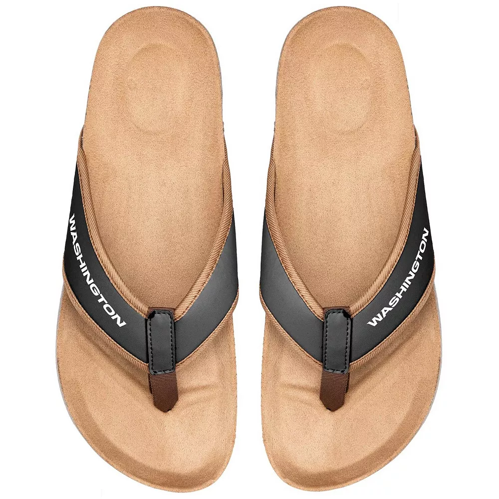 Whether you’re headed to the beach or just lounging around the house, show your Washington Football Team spirit with ease in these Cork flip flops from FOCO. Featuring printed Washington Football Team graphics, these flip flops offer a great way to add an extra bit fandom to your outfit. Best of all, the unique design ensures a comfortable fit all day long, while the textured bottoms will help prevent slips and falls.