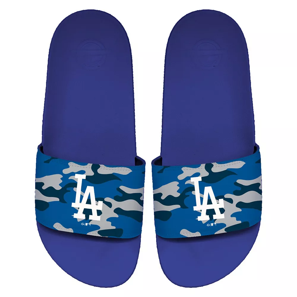 When you wear these Motto slide sandals from ISlide, you can fill every step you take with team spirit. They feature a stylish camo design and the iconic Los Angeles Dodgers logo. The built-in arch support ensures a comfortable wear experience everywhere you go.