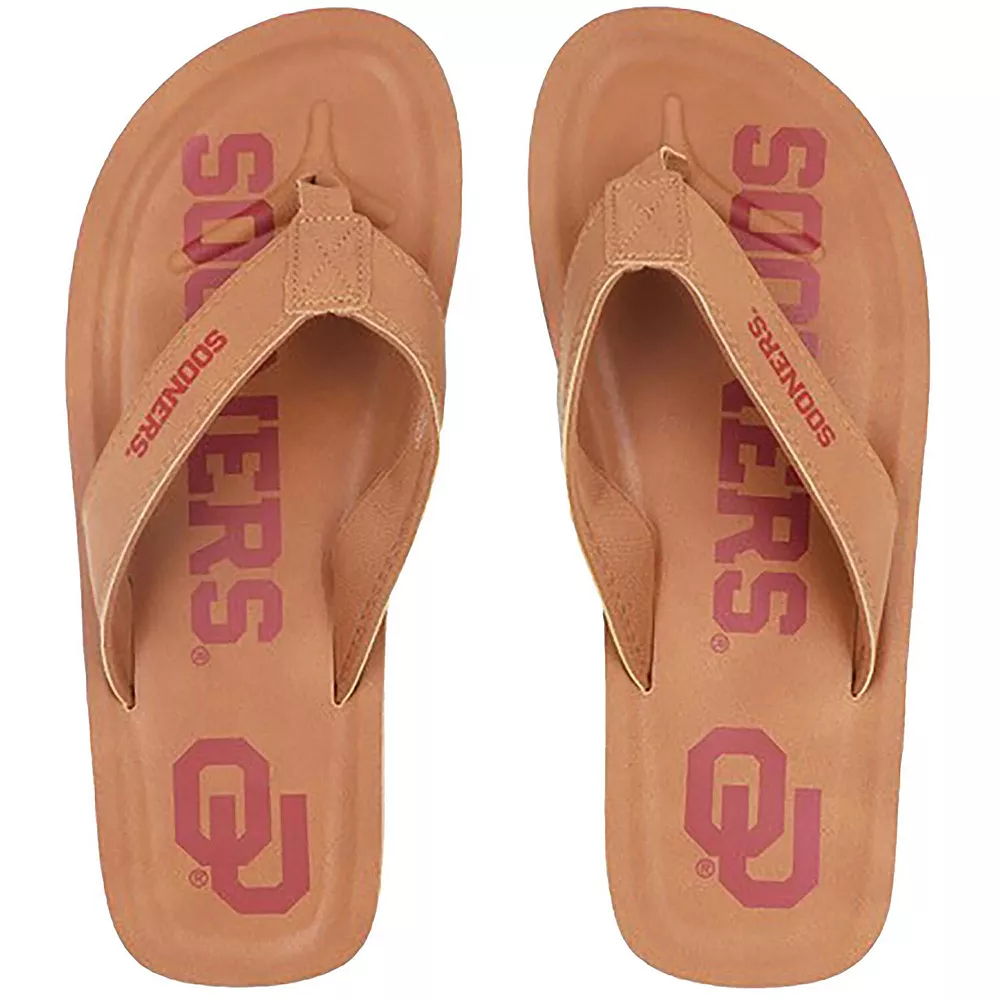 Head to the game or beach with your feet decked out in Oklahoma Sooners spirit. These Color Pop flip flop sandals add a classic touch to your casual outfits and draw attention to your favorite team in an atypical form. Your Oklahoma Sooners enthusiasm cannot be outrun when you slip on this pair of shoes.